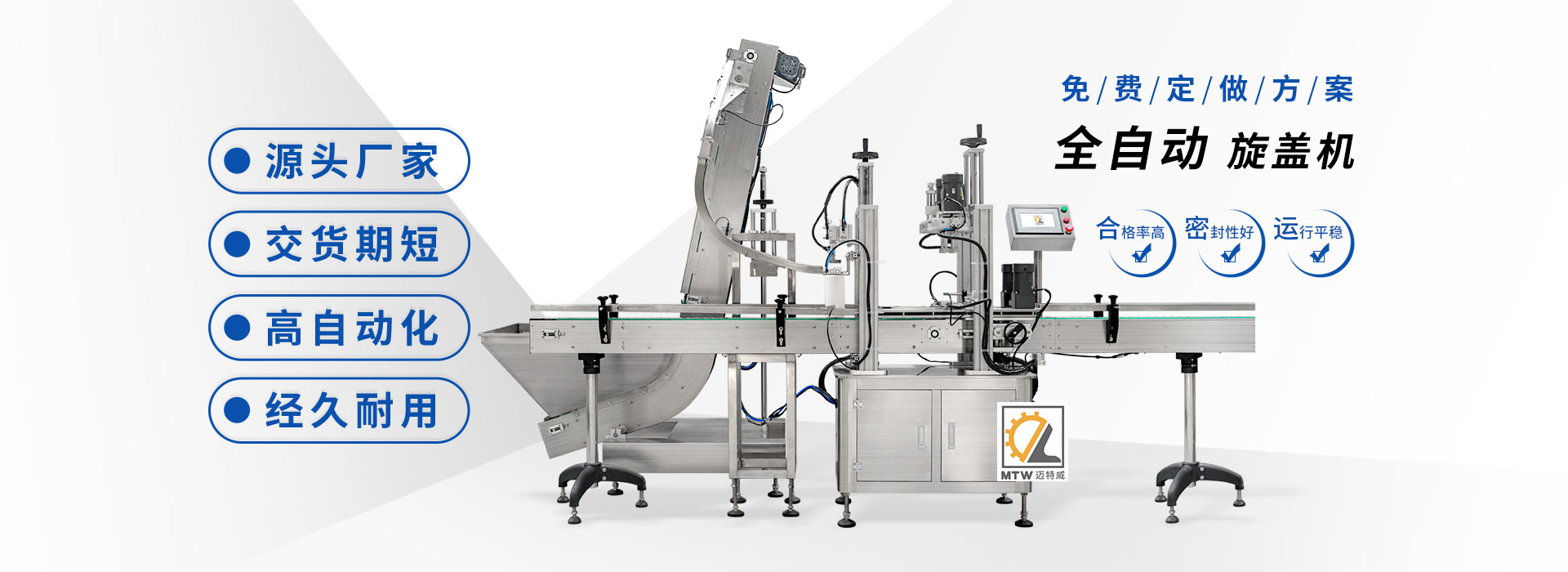 邁特威自動化設(shè)備(天津)有限公司坐落于素有京津明珠之稱的天津·武清區(qū),是國家高新技術(shù)企業(yè),專注生產(chǎn)、研發(fā)、銷售全自動灌裝機、旋蓋機、封口機、貼標機等系列產(chǎn)品,立足京津冀、服務(wù)全國,遠銷海內(nèi)外,團隊由行業(yè)高技術(shù)人士組成,為國內(nèi)外食品、日化、糧油、醫(yī)藥等企業(yè)提供滿意的包裝解決方案。 查看詳情